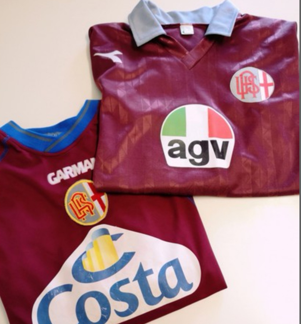 Nella foto troviamo due maglie di colore bordeaux che non sono mai state utilizzate in competizioni ufficiali ma solamente durante amichevoli.