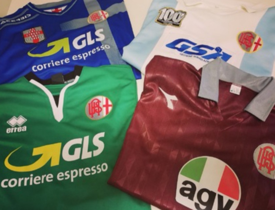 Si può notare tra tutte il "100" sulla maglia bianco-azzurra utilizzata nella partita del centenario contro il Rimini (1912-2012).