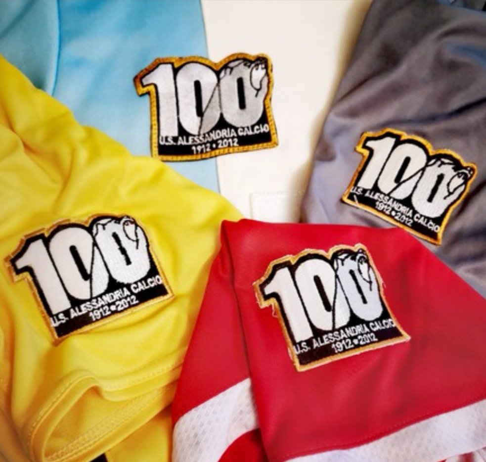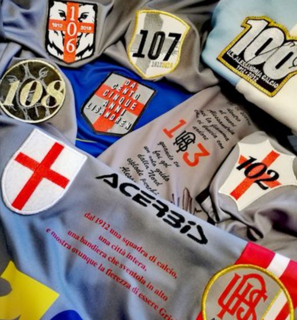 Qui raffigurate troviamo le toppe celebrative che sono state applicate sulle casacche a ricordo dei compleanni della società Alessandrina (Febbraio).