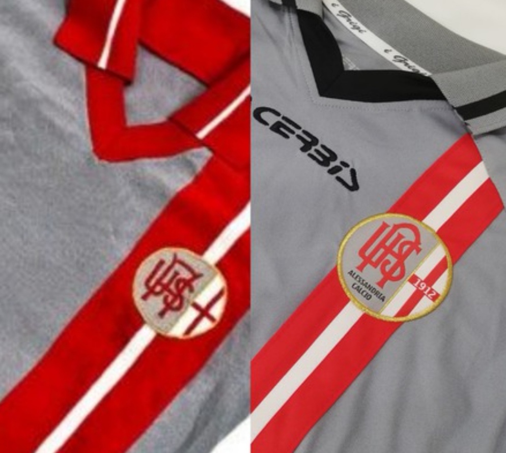 Sulle maglie grigie per due stagioni consecutive venne applicato anzichè lo stemma societario quello del Comune di Alessandria, uno scudo bianco con croce rossa cucita in canottiglia.